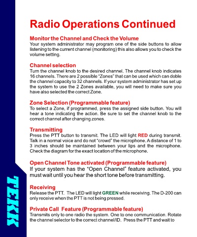 Release the PTT. The LED will light GREEN while receiving. The D-200 can