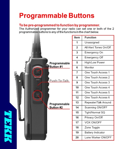 programmable buttons to any of the functions in the chart below.